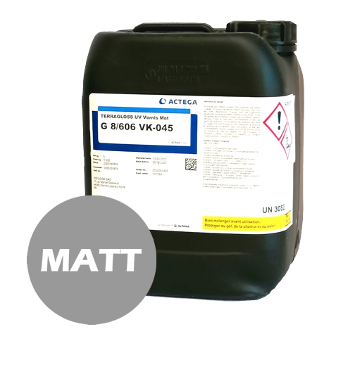Le vernis Flexo UV ACTEGA TERRA G 8/606-VK-045 est un vernis mat terne offrant une surface extrêmement mate grâce à une charge mattante par broyage lui garantissant un bon transfert. il apte au transfert thermique..